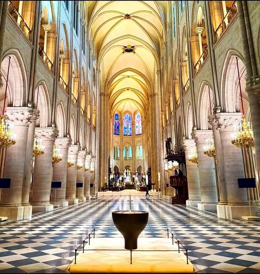 The cathedral reopened in December 2024, five years after the fire, with its interior and stained glass windows restored to their former splendor.