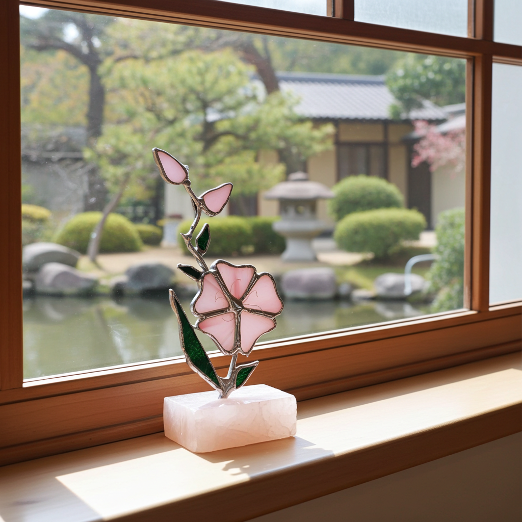 The artwork uses glass as a medium through which light is intentionally shaped, reflecting the disciplined aesthetics of Japanese visual culture.